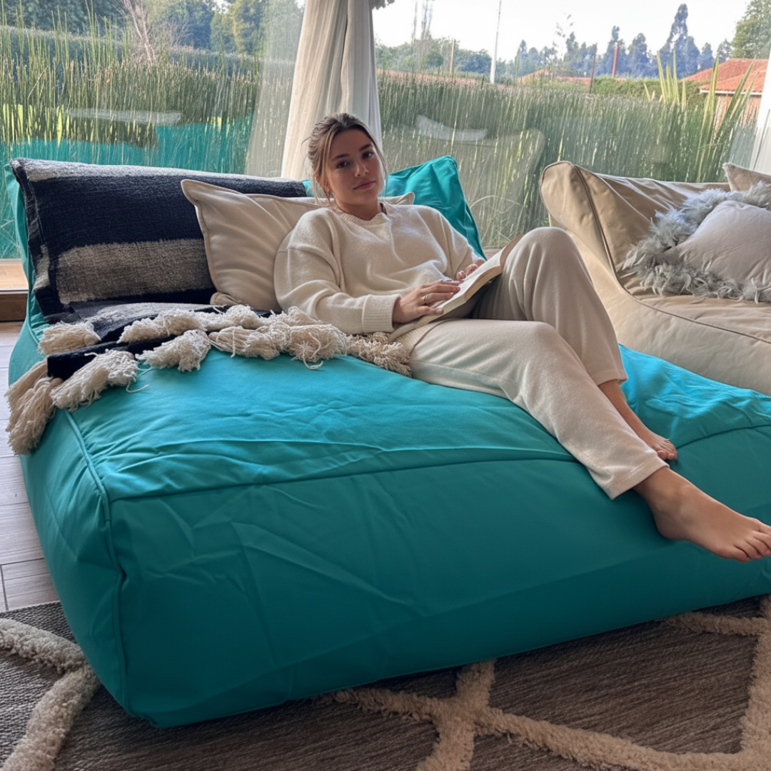El relleno es de perlas de poliestireno (EPS), que se adaptan al cuerpo para brindar máxima comodidad.